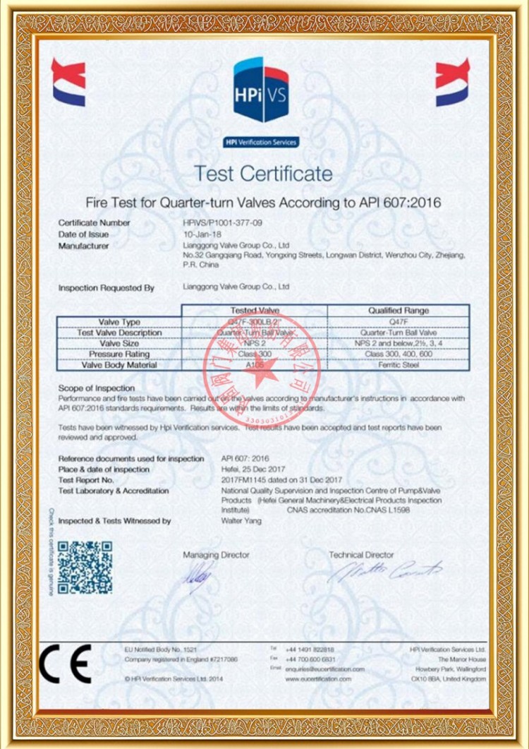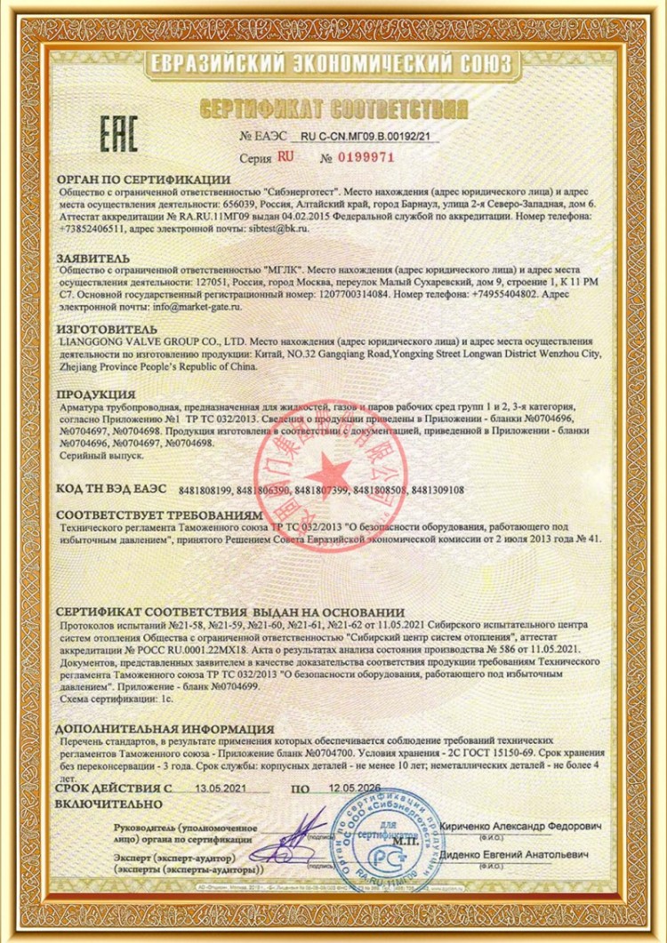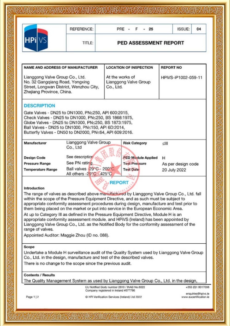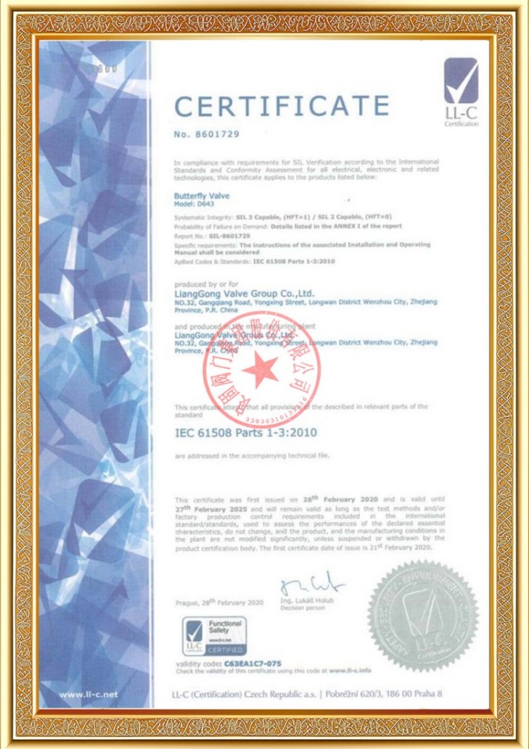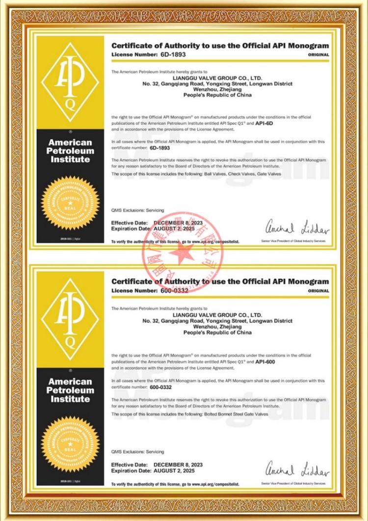 Mūsų įmonė turi įvairias slėginių vamzdynų vožtuvų gamybos licencijas, o mūsų produktai yra praėję TS A1, ISO 9001, ISO 14001, ISO 45001, API 6D, API 600, APL 609, CE/PED, API 607, API 6FA, ISO 15848-1 ir EAC sistemos bei produktų sertifikavimo standartus. Taip pat turime išradimų patentų sertifikatus įvairiems vožtuvams, tokiems kaip rutuliniai vožtuvai, peteliški vožtuvai, apsauginiai vožtuvai ir uždarymo vožtuvai.