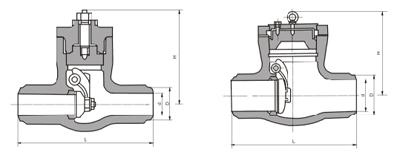 H64Y tipo 1500 (Lb) ~ 2500 (Lb) aukštos temperatūros sandūrinio suvirinimo atbulinis vožtuvas, skirtas Class1500 ~ 2500Lb, darbinė temperatūra -29 ~ 570 ℃ naftos, chemijos, šiluminėms elektrinėms ir kitoms dujotiekio sąlygoms.
